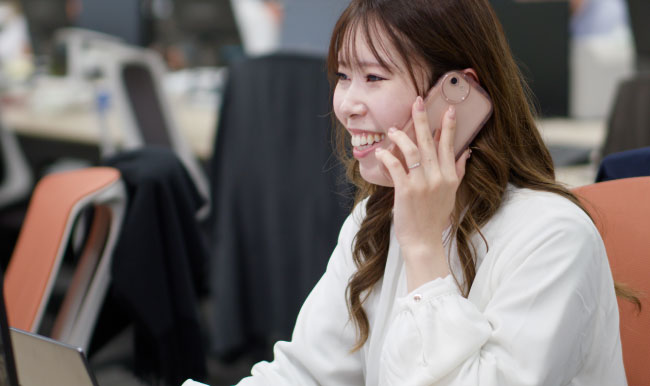 営業は個人の努力で数字を伸ばせばよい、と考えがちですが、当社の営業職ではチーム内の連携が不可欠です。情報を共有し、互いに協力し合える環境があることで、効率的に業務を進めることができます。